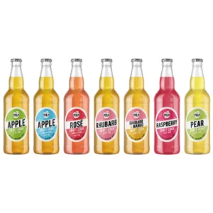 2 x APPLE 4.7% 2 x RASPBERRY 4% 2 x RHUBARB 4% 2 x RHUBARB & MANGO 4% 2 x MANGO & LIME 4% 2 x PEAR CIDER 4%